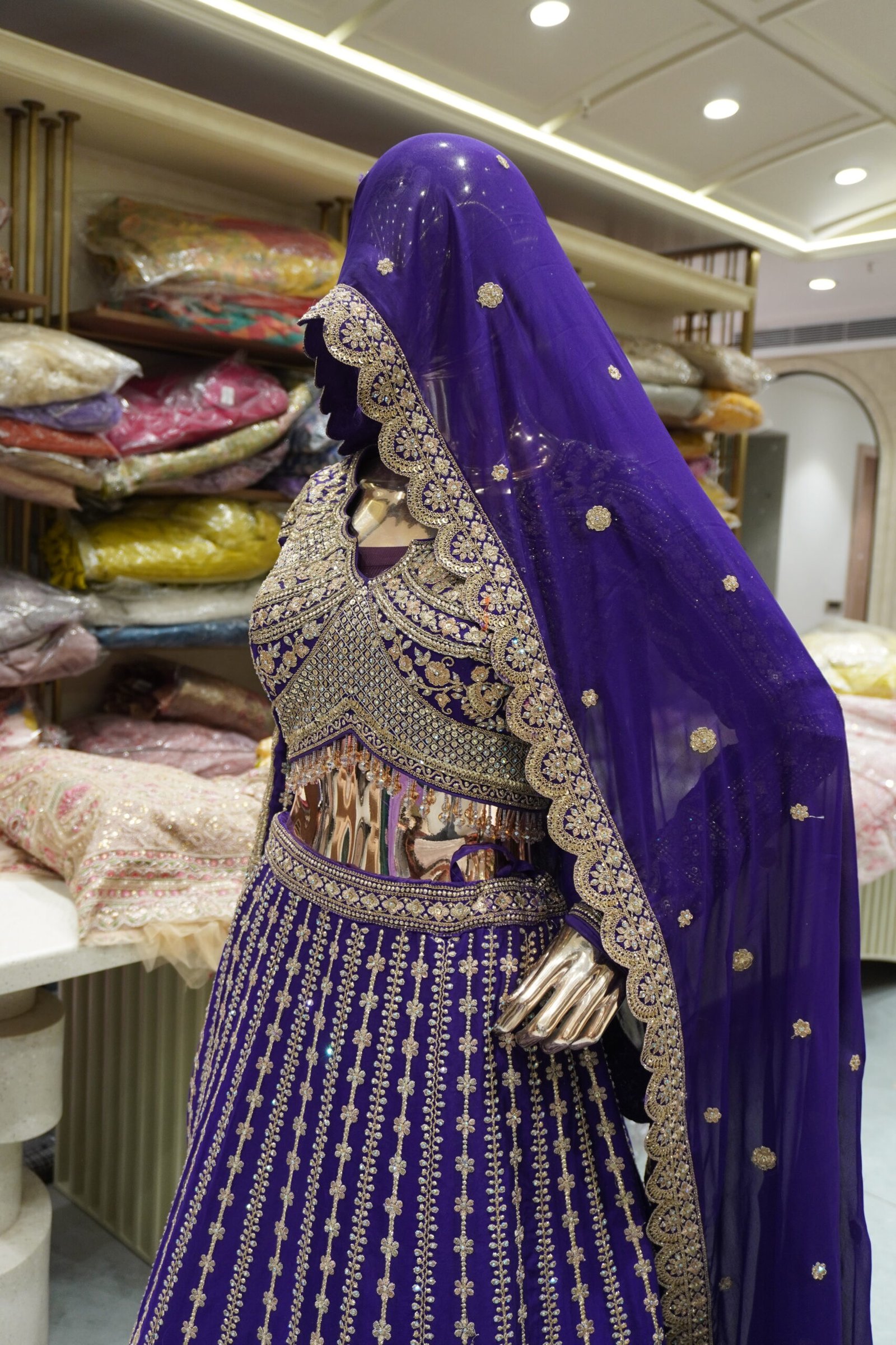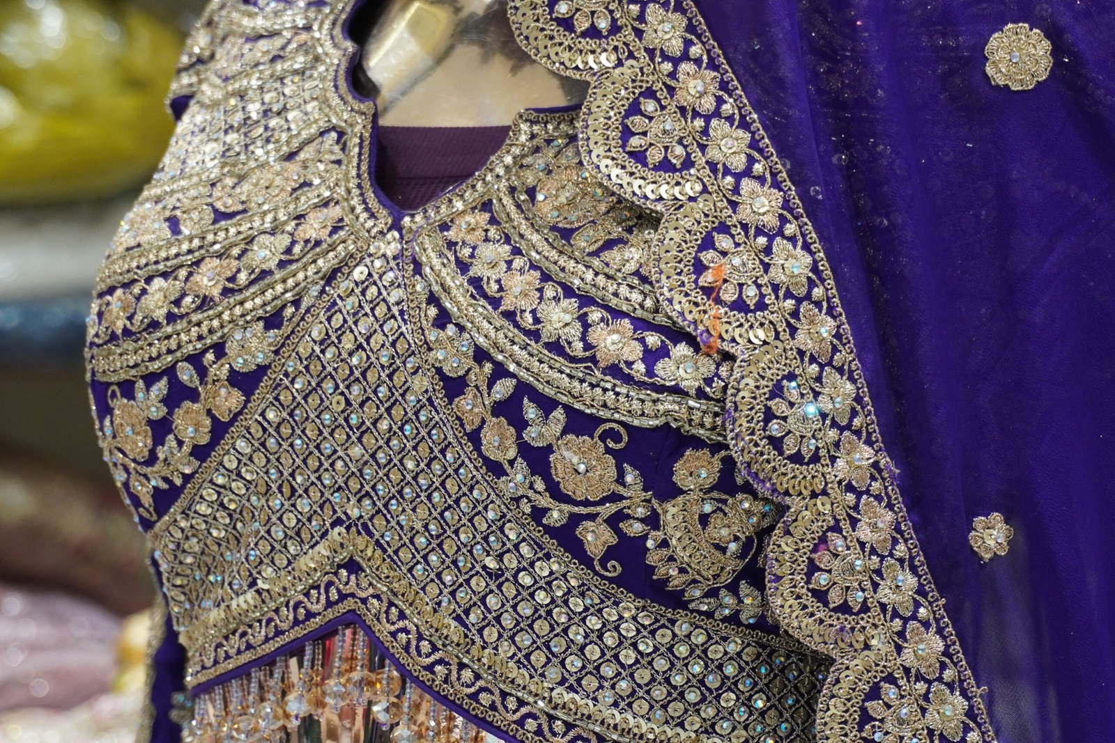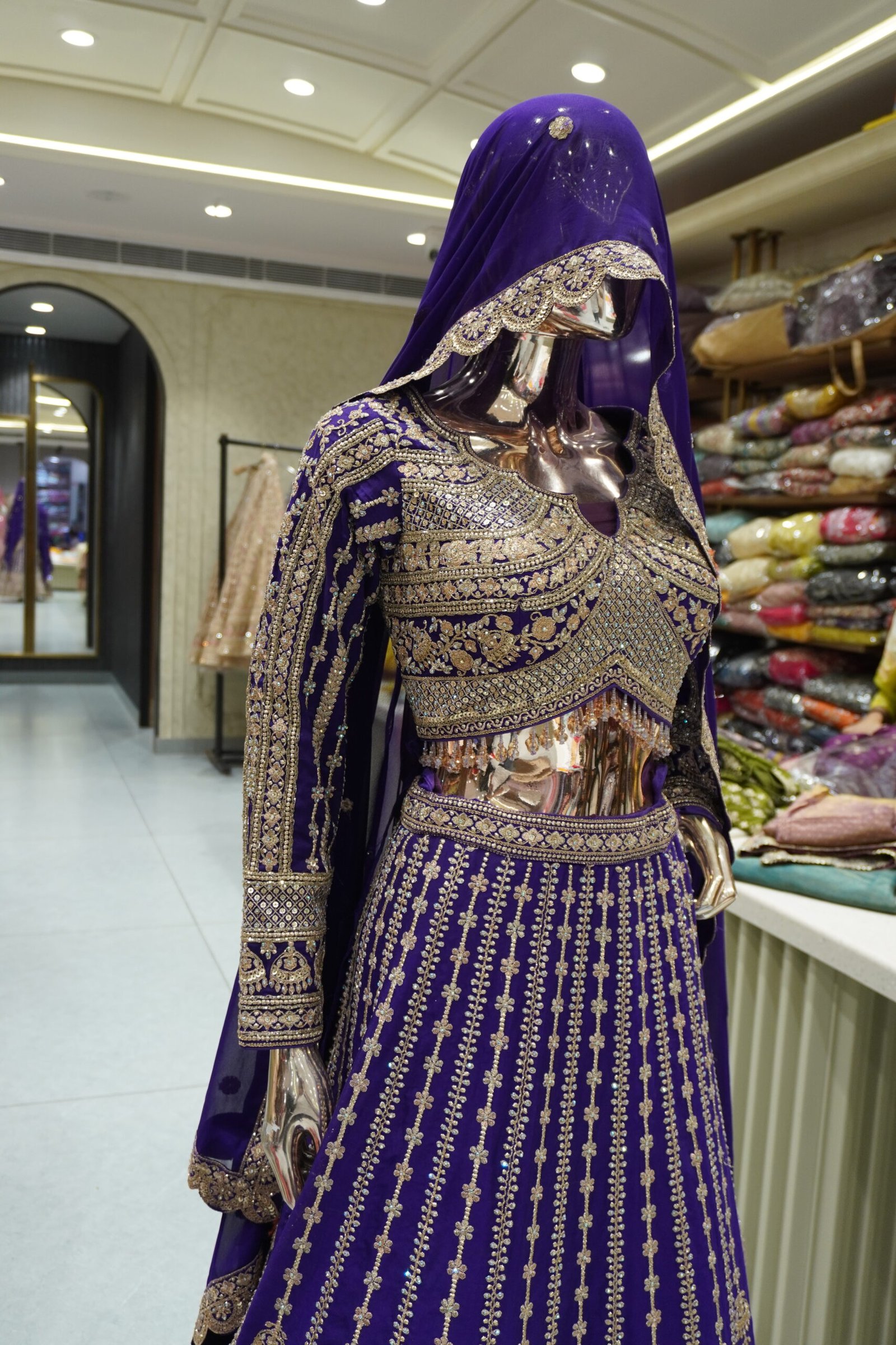 Work: Heavy zari, sequence, dori & golden thread embroidery