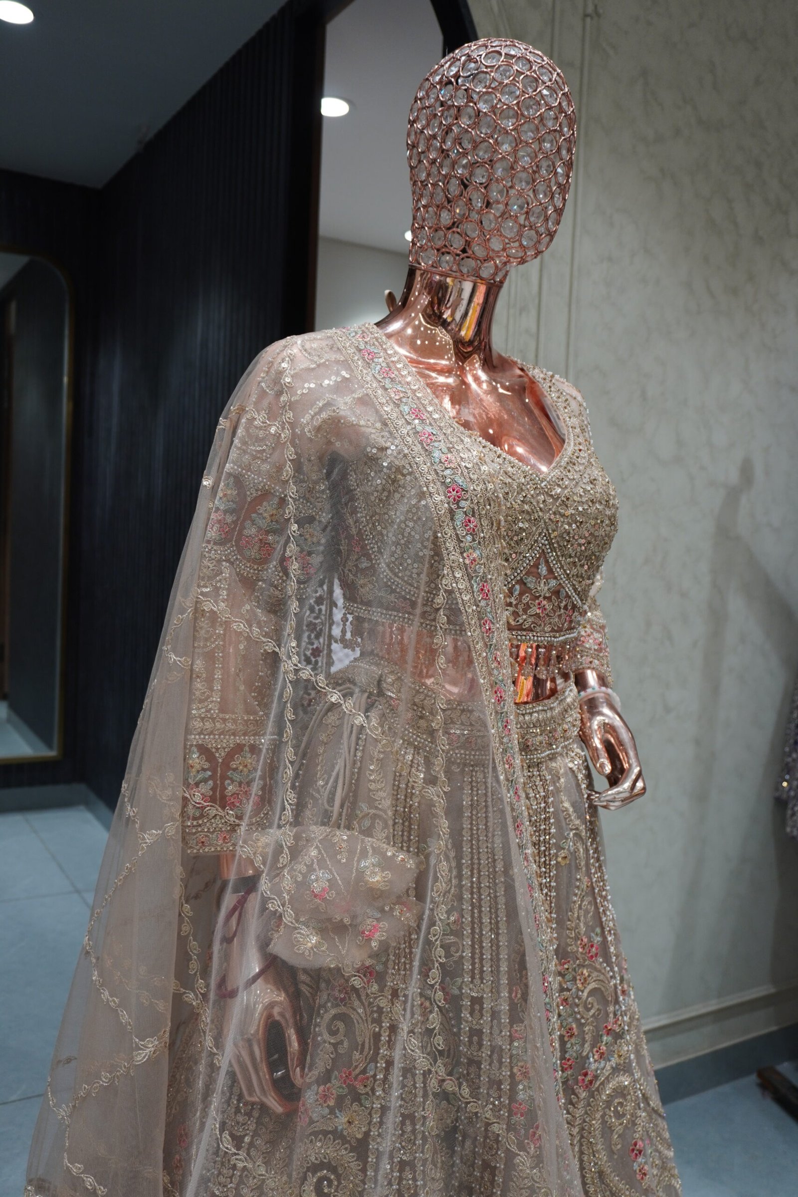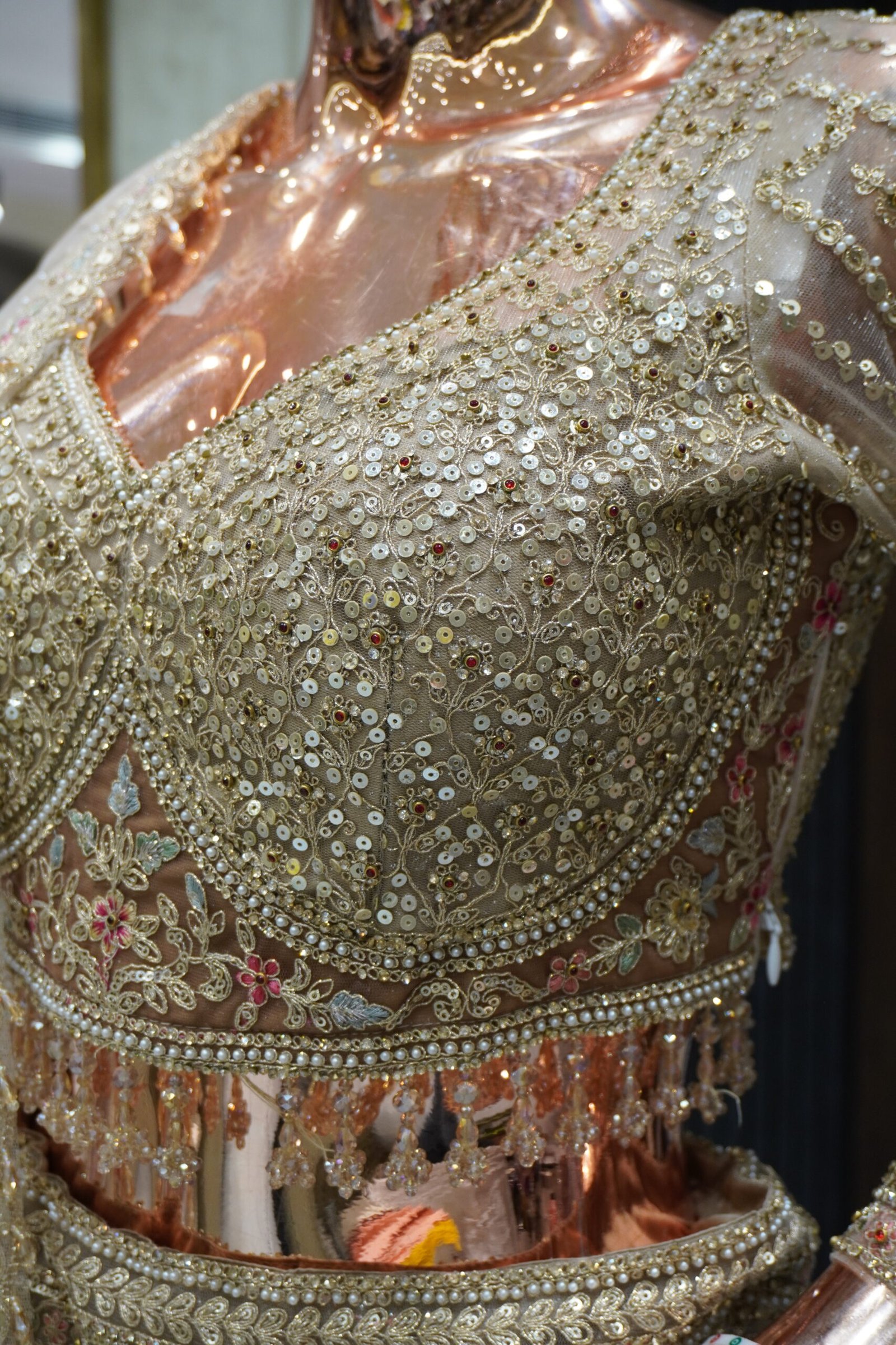 Work: Heavy zari, sequence, stone, and resham embroidery