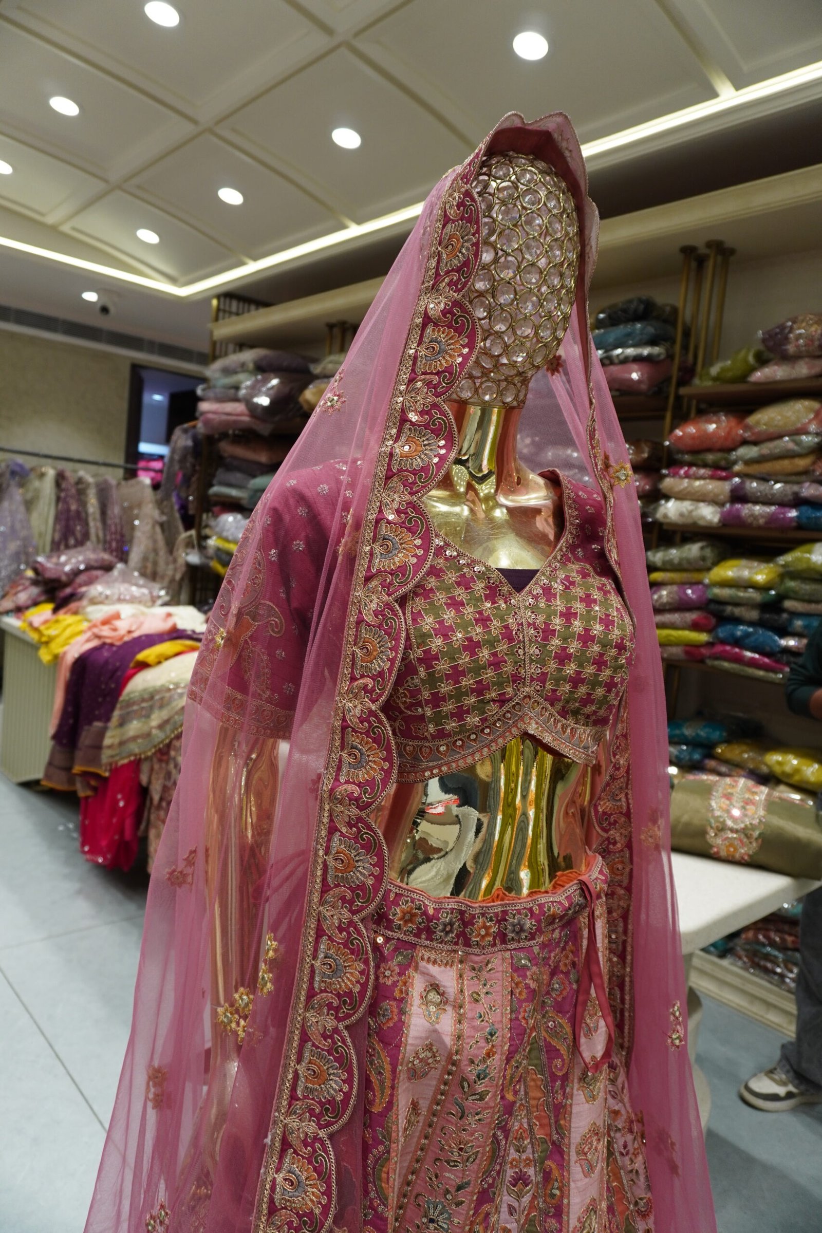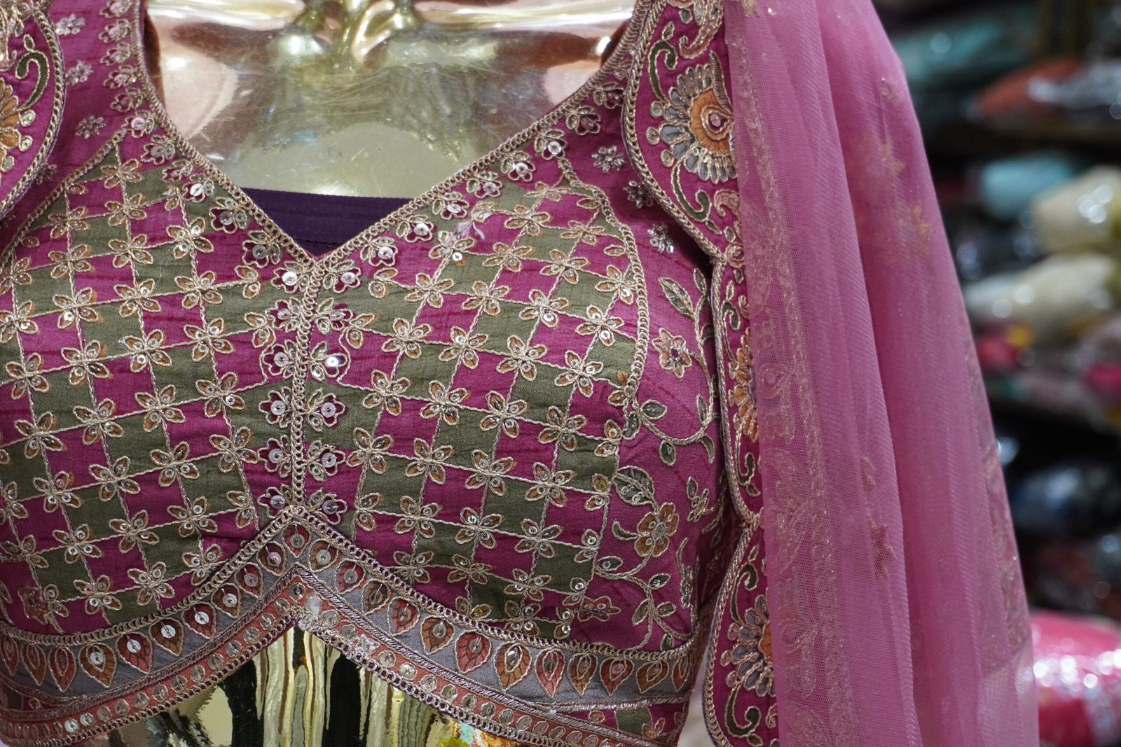 Work: Rajasthani motifs, zari, sequence & multi-thread embroidery