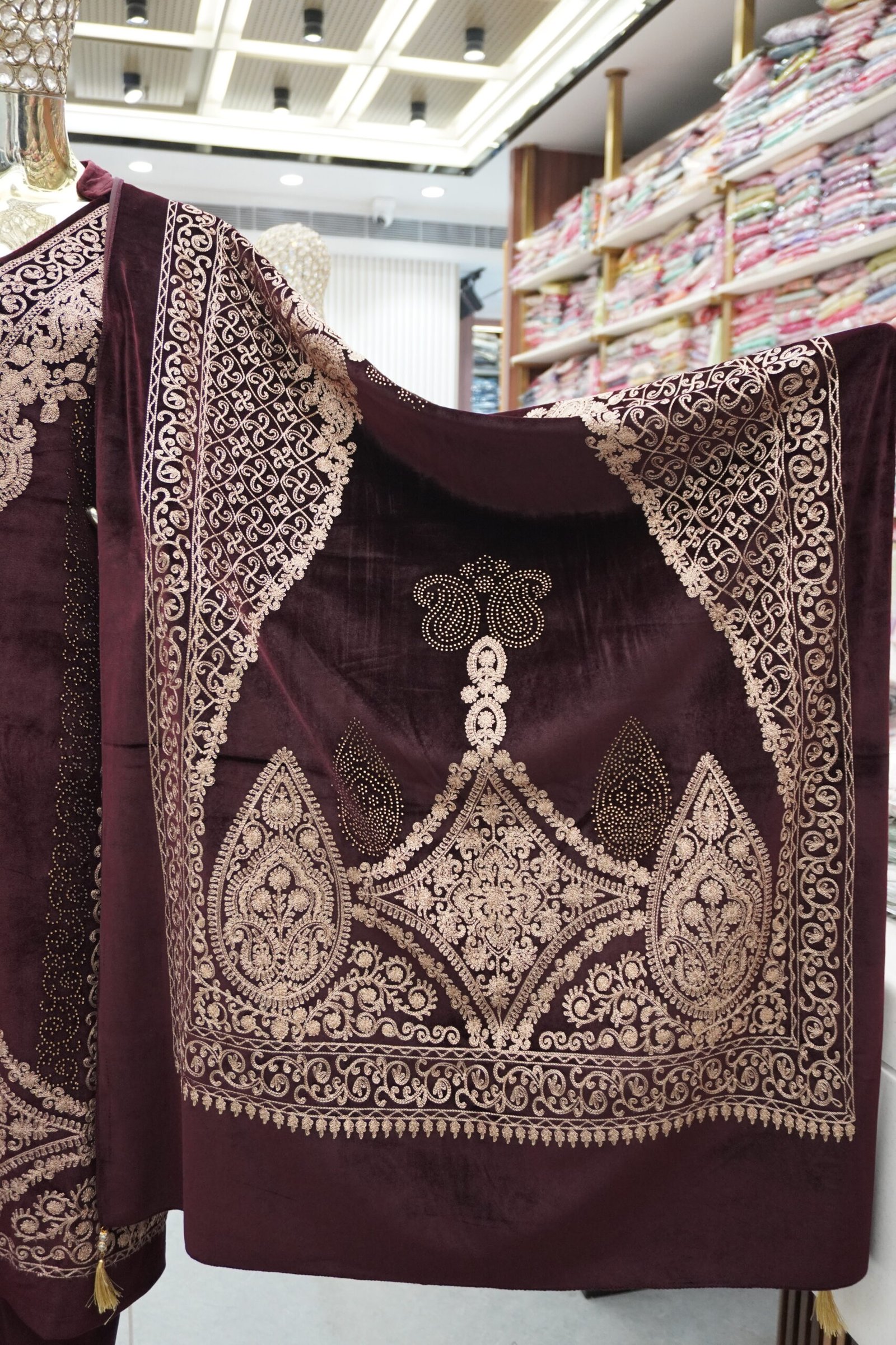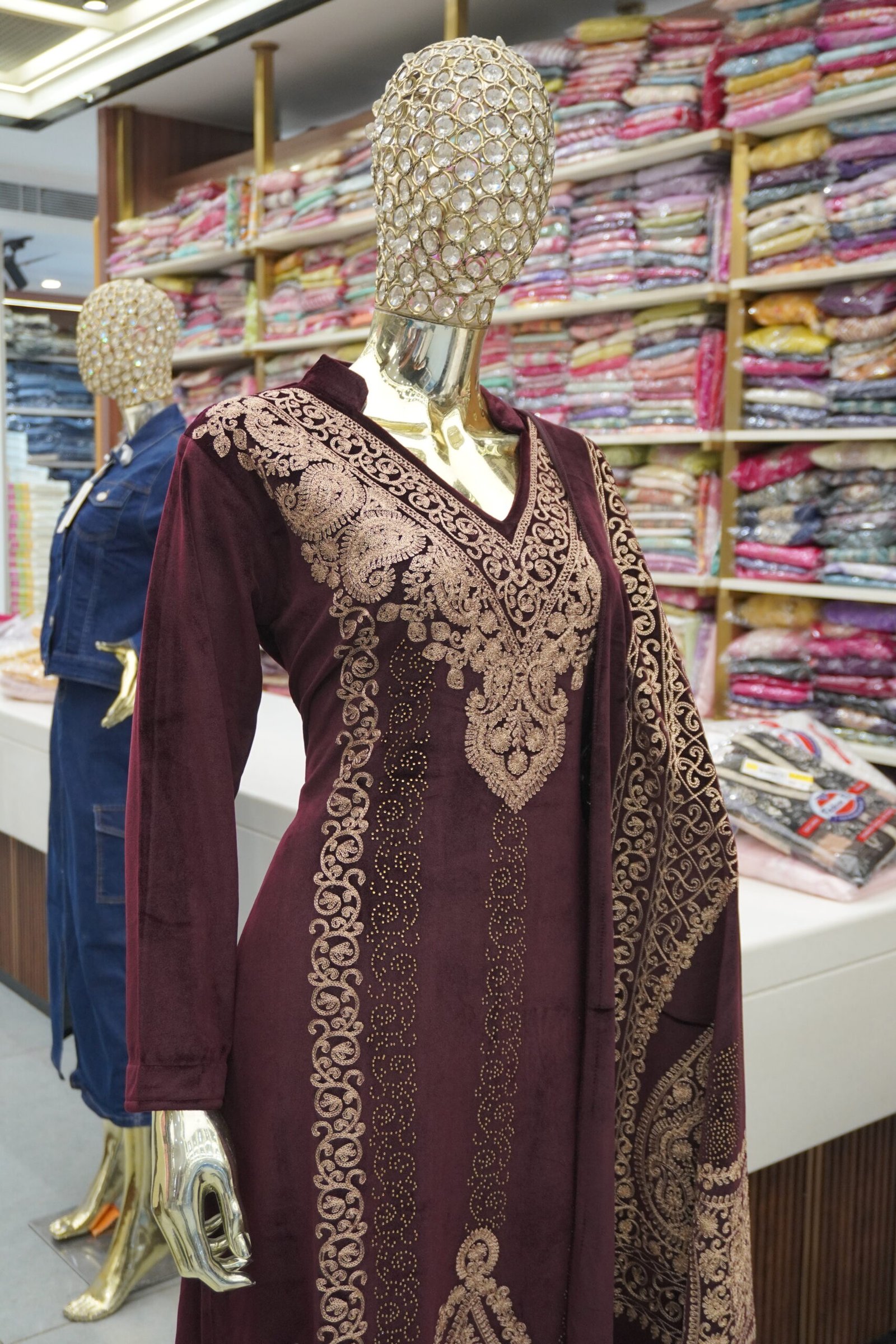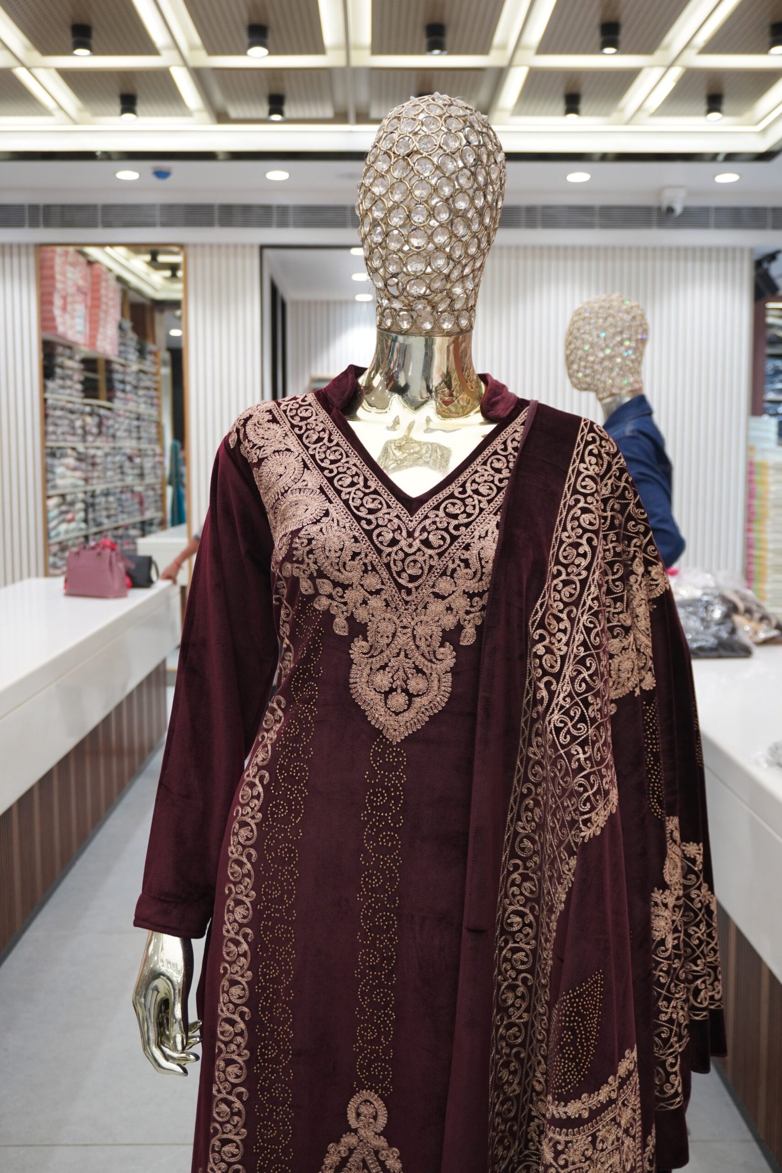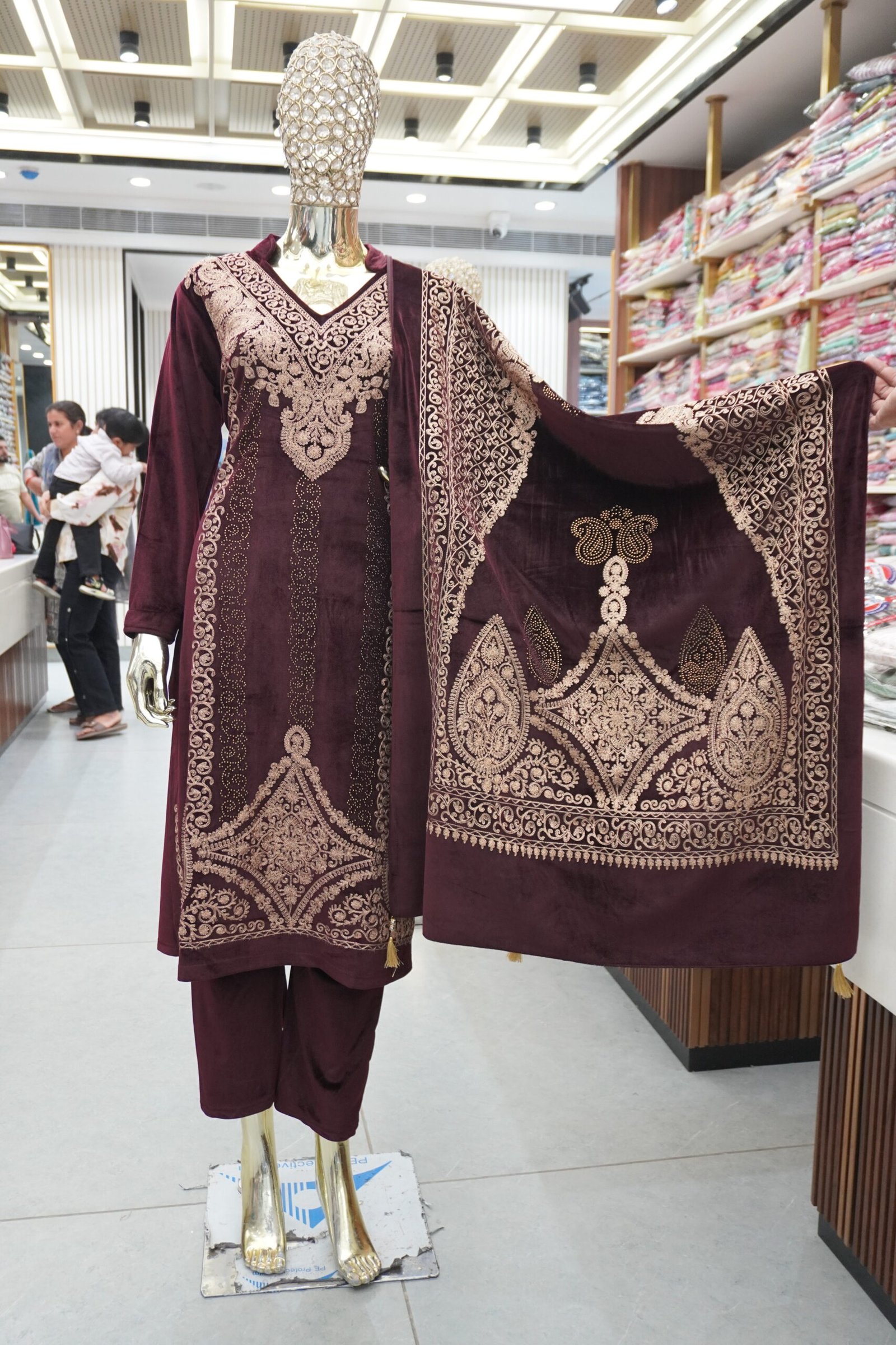 Care: Dry clean only to maintain embroidery & velvet texture